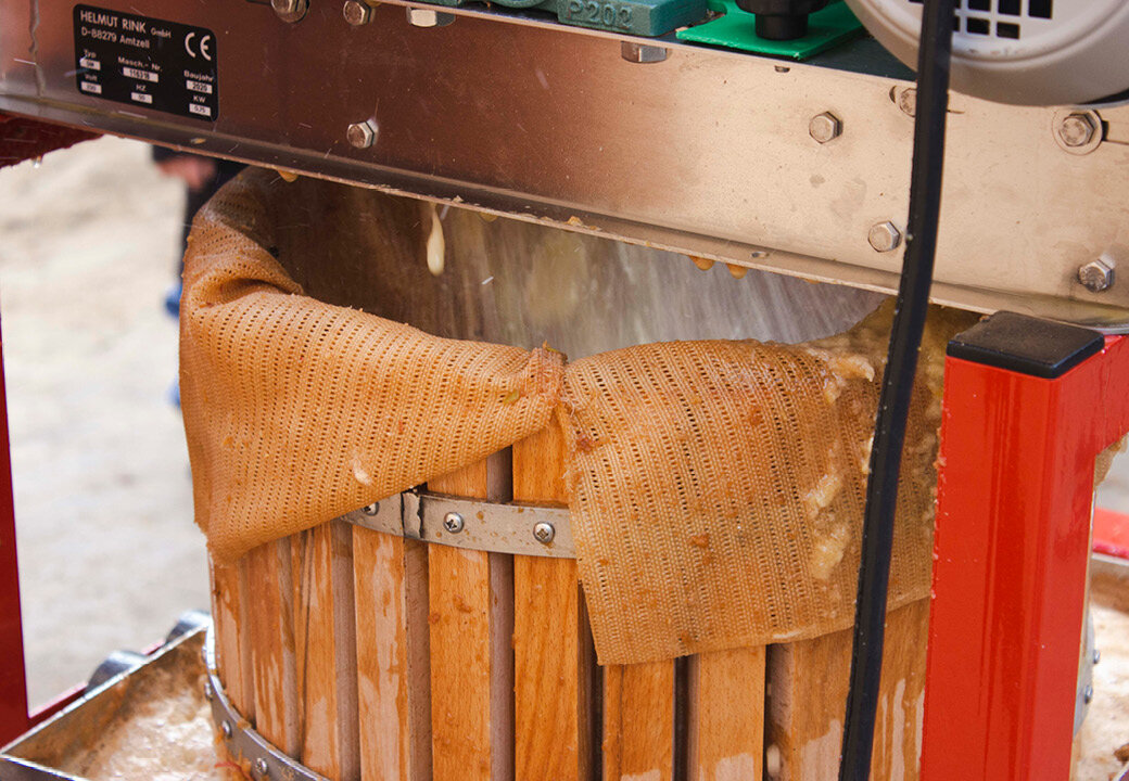Unter strahlender Herbstsonne gab es auf dem Außengelände der Kita an der Dr.-Franz-Mertens-Straße reichlich zu tun für Jungen und Mädchen, für Erzieher*innen und einige fleißige Helfer*innen aus der Elternschaft: Zunächst mussten die Äpfel von den Bäumen gepflückt oder geschüttelt werden und im Anschluss zur nächsten Station transportiert werden. Dort wurden die großen und kleinen rot-grünen Früchte in mehreren großen Wannen ordentlich gewaschen. Für den nächsten Schritt war Maschinenkraft notwendig: In kleinen Portionen rollten die Äpfel in den Häcksler und wurden darin zerkleinert und landeten in der Presse. Viele Kinder konnten selbst mit eigener Muskelkraft an der Pressvorrichtung pumpen, um aus den Äpfeln die letzten Tropfen herauszubekommen.