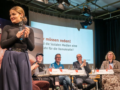 Swantje Schäfer, Student*in und politische Aktivistin, betonte, wie wichtig es für die Persönlichkeitsbildung von jungen Menschen sei, sich auszuprobieren, sich verschiedenen Gruppen anzuschließen und vielleicht auch verschiedene Netz-Identitäten auszuleben: „Es herrscht schon auch Verunsicherung bei jungen Leuten: Was kann ich posten, wo kann ich aktiv sein, welche Auswirkungen hat das auf Bewerbungen für einen neuen Job?“ Lea von der Mosel, Referentin für Öffentlichkeitsarbeit und Social Media bei der Arbeitnehmerkammer, mahnte Differenzierung in der Bewertung der sozialen Netze an: „In Karriere- und Berufsnetzwerken herrscht selbst bei sehr konträren Auffassungen und Meinungen ja eine viel zivilisiertere Debattenkultur als bei Facebook oder X.“