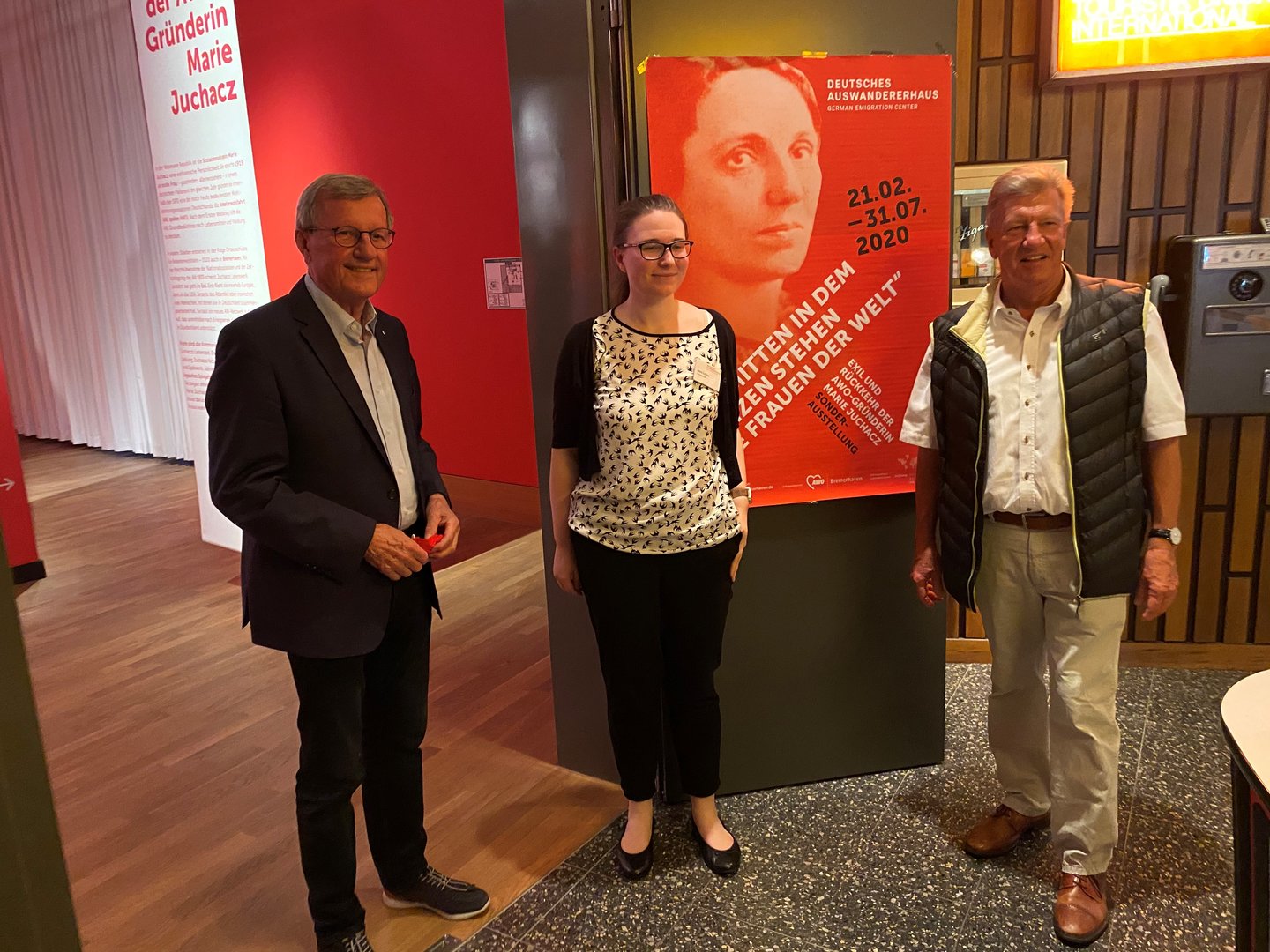 Auf den Spuren der Gründerin: Wilhelm Schmidt, Vorsitzender des Präsidiums des Bundesverbandes der Arbeiterwohlfahrt (AWO), hat den AWO Kreisverband Bremerhaven besucht. Gemeinsam mit Dr. Uwe Lissau, Vorsitzender des AWO Kreisverbandes Bremerhaven, besichtigte der Repräsentant von bundesweit 312.000 AWO-Mitgliedern sowie fast 240.000 hauptamtlich Beschäftigten und 82.000 ehrenamtlich Mitarbeitenden die Sonderausstellung „Und mitten in dem Ganzen stehen die Frauen der Welt“ über AWO-Gründerin Marie Juchacz im Deutschen Auswandererhaus.