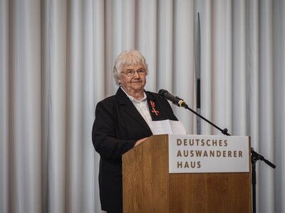 Im Auftrag des Bundespräsidenten zeichnete Bremerhavens Stadtverordnetenvorsteher Torsten von Haaren die 82-Jährige in den Räumen des Deutschen Auswandererhauses mit dem Orden aus. Gleichzeitig würdigte von Haaren die Verdienste von Hanna Peters gerade für viele ältere Menschen. „Ihre Arbeit war über viele Jahre von unschätzbarem Wert. Nicht nur für die Bewohnerinnen und Bewohner, sondern auch für deren Angehörige und für alle Pflegekräfte im Lotte-Lemke-Haus“, so von Haaren.