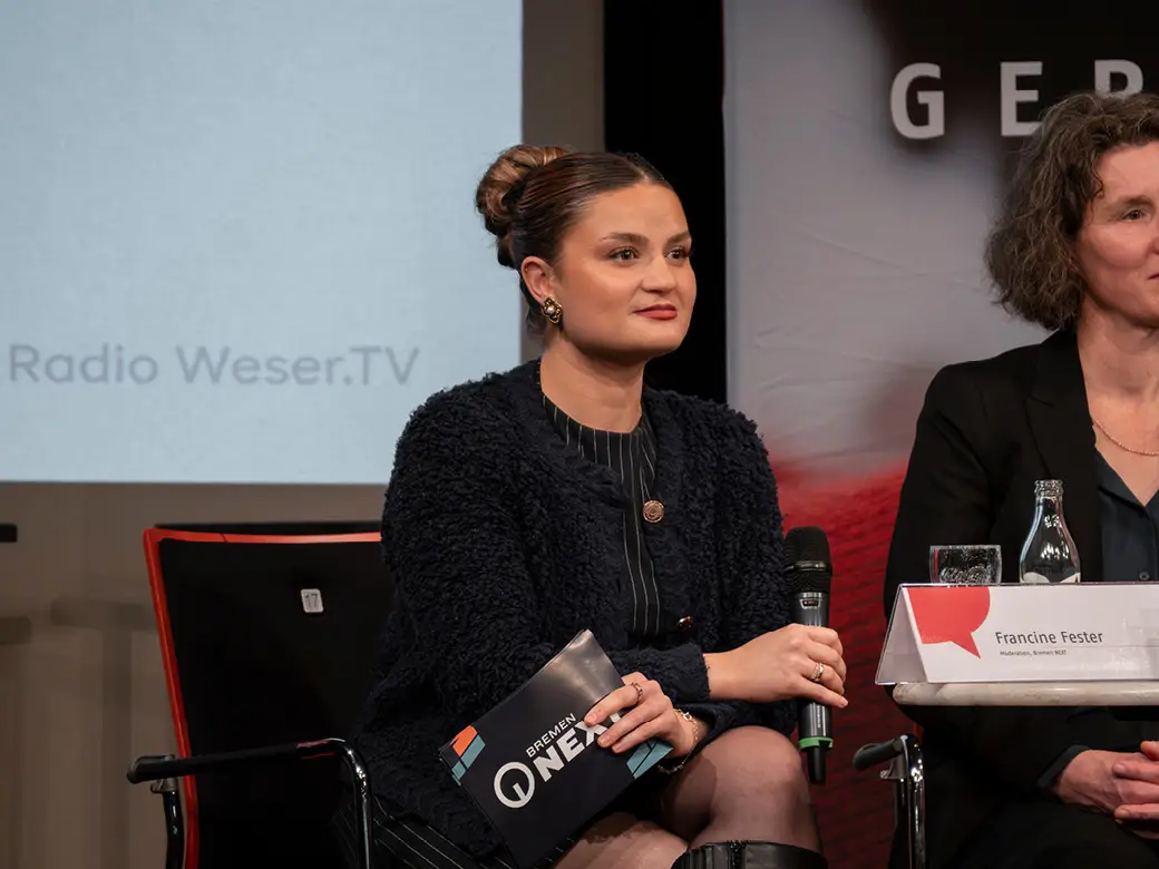 Nach der Begrüßung durch AWO-Prokuristin Silke Rupietta machte Moderatorin Francine Fester (Bremen Next) gleich zu Beginn die Diskrepanz deutlich, der wir alle täglich ausgesetzt sind: „So ein Smartphone ist schon ein tolles Gerät. Aber wir müssen uns der Risiken und Gefahren bewusst sein – besonders im Interesse von Kindern und Jugendlichen.“