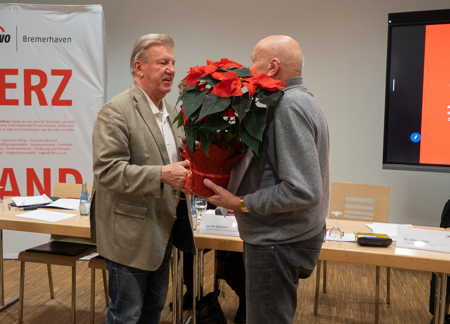 Das sei eine gute Nachricht für die rund 400 Mitglieder, die mehr als 1.200 Beschäftigten in den 60 Einrichtungen und die rund 4.000 Menschen, die die AWO täglich in Bremerhaven und umzu betreut, pflegt und unterstützt, stellte Vorstandsvorsitzender Dr. Uwe Lissau fest. Um die AWO auch künftig wettbewerbs- und zukunftsfähig zu halten, sei bereits im vorigen Jahr ein umfangreicher Strategieprozess unter dem Titel „Roter Faden" begonnen worden, der in 2023 schon viele Ergebnisse zeige. Eckart Kroon: „In vielen Bereichen haben wir uns neu aufgestellt, weiterentwickelt und messbar verbessert: Recruiting, Gebäudemanagement, Einkauf, Standortanalysen, Mitarbeiter*innenbindung und Qualitätssicherung sind nur einige Stichworte aus einem sehr umfangreichen Maßnahmen- und Projektkatalog." Wichtige Ziele seien die Personalsicherung, die Refinanzierung aller Angebote und die Qualitätssicherung und der Ausbau der Angebote.
