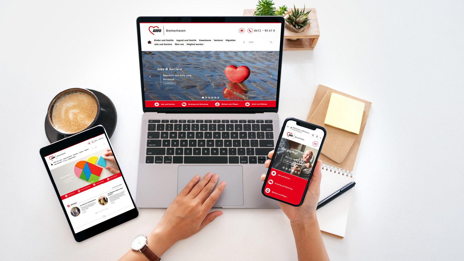 Im Lauf der Jahre hatte die bisherige Internet-Präsenz von AWO Kreisverband und den ausführenden Gesellschaften AWO Bremerhaven gem GmbH, AWO Pflegedienste GmbH, AWO Soziale Arbeit GmbH, AWO Soziale Dienste GmbH und Auxilium Dienstleistungen GmbH ein wenig Staub angesetzt. „Jetzt präsentieren wir die Arbeit des Verbandes und unserer 1.250 Mitarbeitenden in mehr als 60 Einrichtungen und Diensten in Bremerhaven und umzu in neuer Optik und Funktionalität, die den Anforderungen der sich rasant ändernden digitalen Informationswelt entspricht“, sagt Lissau.