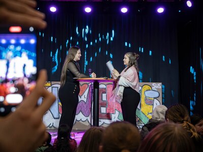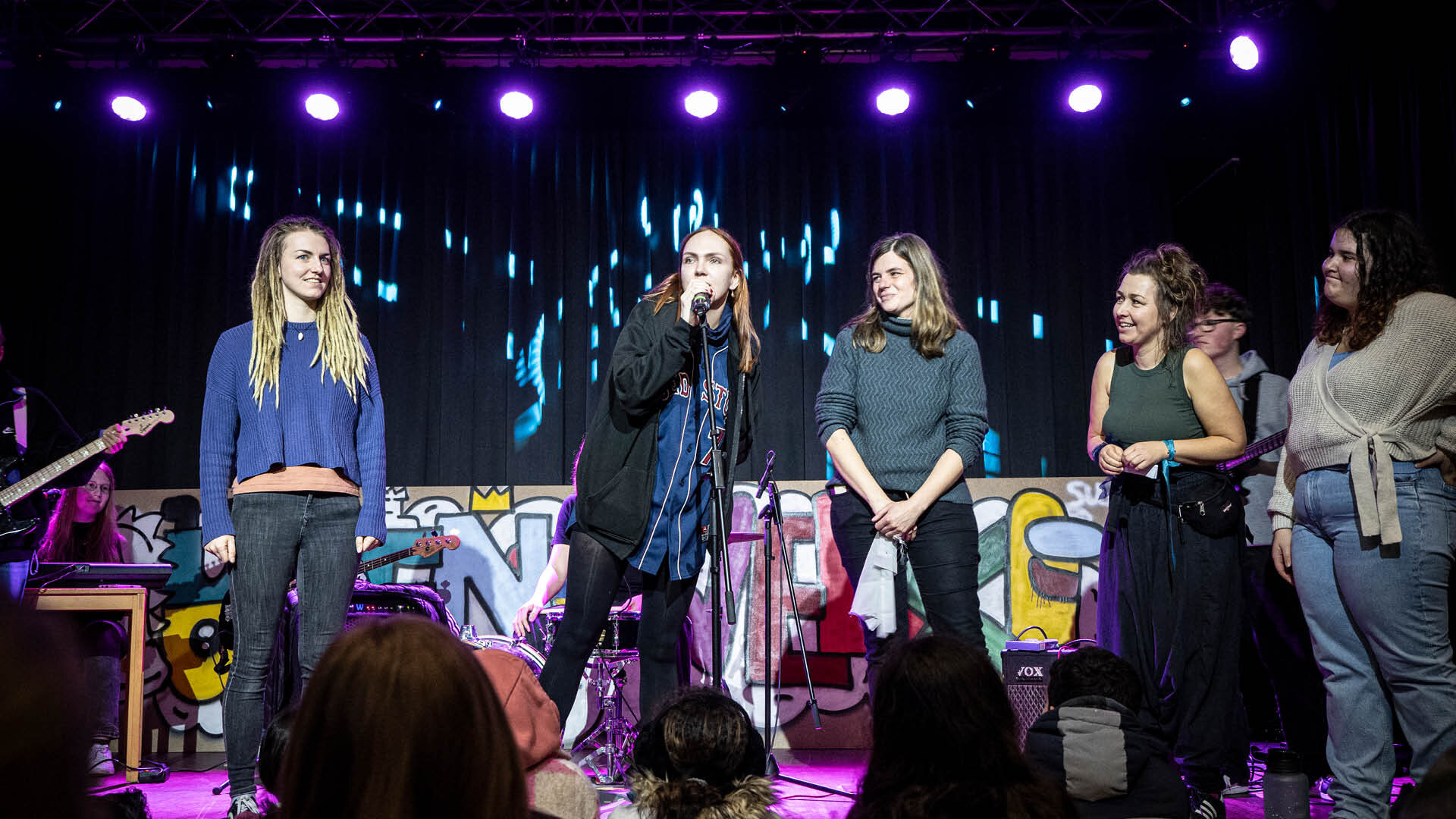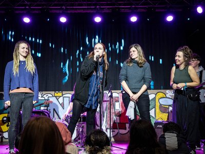 Das Bühnenprogramm eröffnete die junge Band „Overplay“ mit dem Klassiker „Sunny“. „Aber wir wollen heute nicht nur Spaß haben, sondern auch auf ein wichtiges Thema hinweisen“, sagte Sara Appelhagen vom Amt für Jugend, Familie und Frauen des Magistrats, „weltweit werden Mädchen und Frauen täglich Opfer von Gewalt und Unterdrückung, Femizide sind an der Tagesordnung – das muss endlich aufhören.“ Alle Menschen hätten das Recht auf ein Leben ohne Gewalt, ohne Verfolgung, ohne Rassismus und Diskriminierung: „Deshalb sagen wir alle Nein zu Unterdrückung und Ausbeutung. Und wir sagen Ja zu Hilfe und Unterstützung, zu Solidarität und Freiheit für alle Menschen auf der Welt“. Damit alle Besucher*innen den Ausführungen folgen konnten, übersetzten drei Aktivistinnen des Kreisjugendwerks die Rede von Sara Appelhagen in mehrere Sprachen.