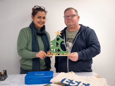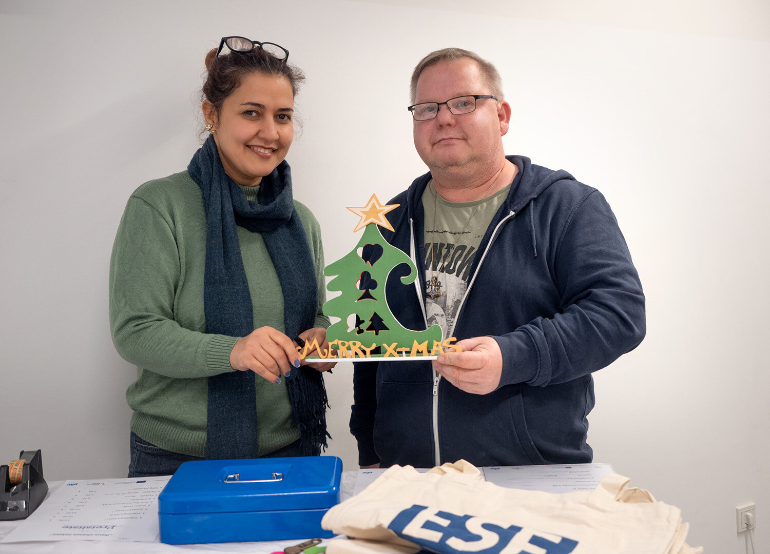 AWO-Vorstandsmitglied Sybille Böschen betonte vor der Kamera, das Projekt und speziell der öffentliche Weihnachtsmarkt seien ein winziger Mosaikstein: „Damit retten wir nicht die Welt, aber wir tragen dazu bei, dass wir uns gegenseitig wahrnehmen.“